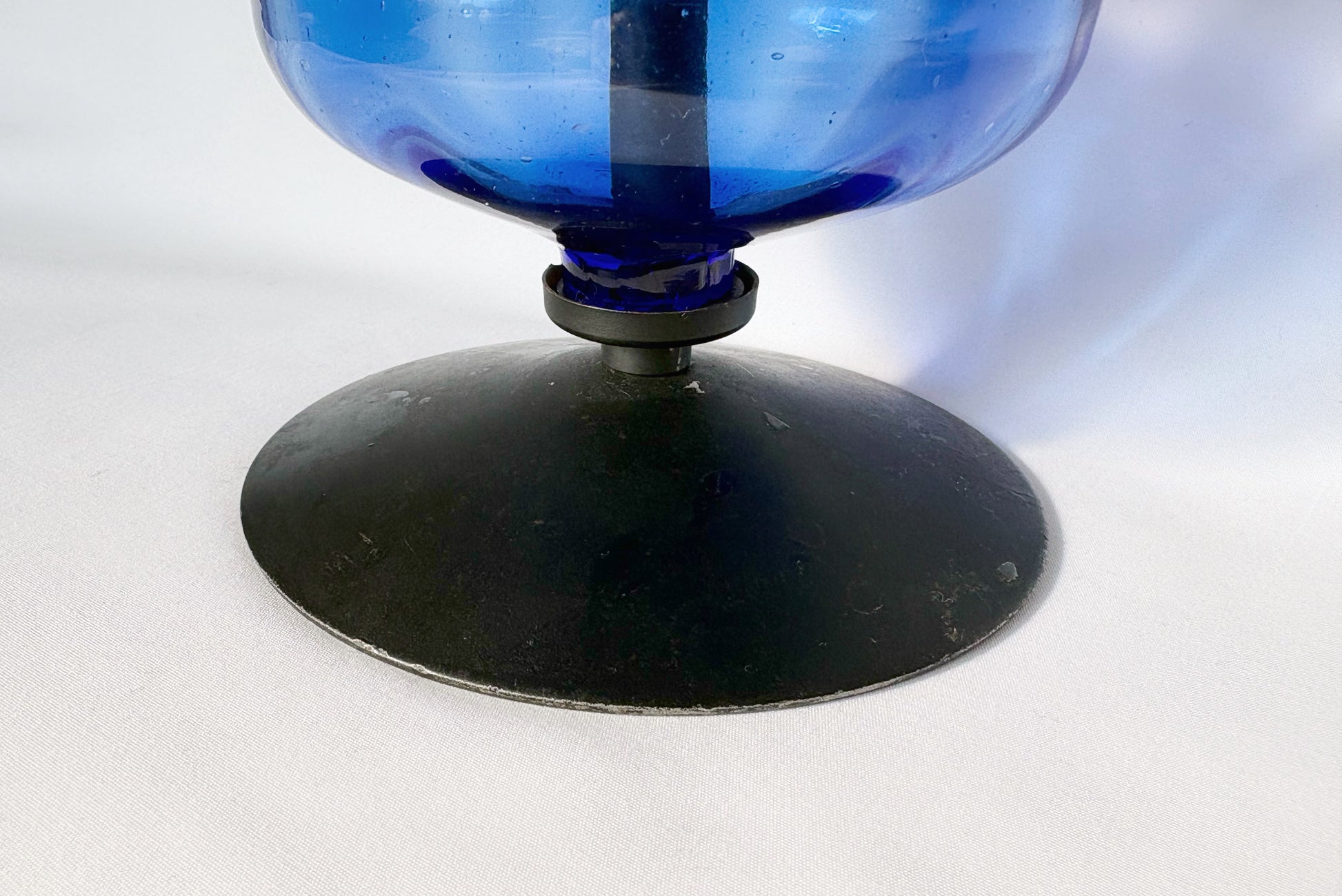 深みのあるブルーガラスとブラックのベースが印象的で、重心の低い安定感あるフォルムが特徴です。